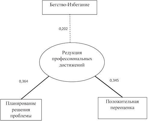 Рис. 6. Взаимосвязь редукции профессиональных достижений сотрудников с используемыми ими копинг-стратегиями (по всей выборке, N = 211)
