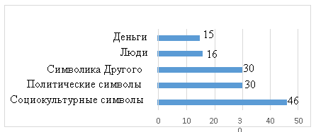Вместе с тем исторически сложившаяся включенность России во взаимодействия с Европой, исторический опыт сотрудничества, сложившиеся культурно-исторические связи определили тот факт, что основу образа Европы в представлениях российской молодежи составляет социокультурное пространство, которое формирует содержательное ядро образа Европы. Социокультурные индикаторы составили большую часть элементов, отраженных на рисунках о Европе (рис. 1).