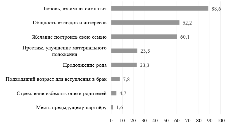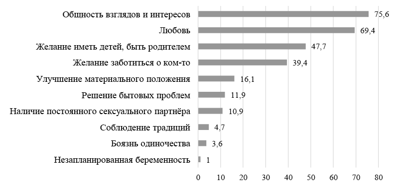 Рис. 5. Мотивы, способствующие вступлению в брак, % (n = 193)
