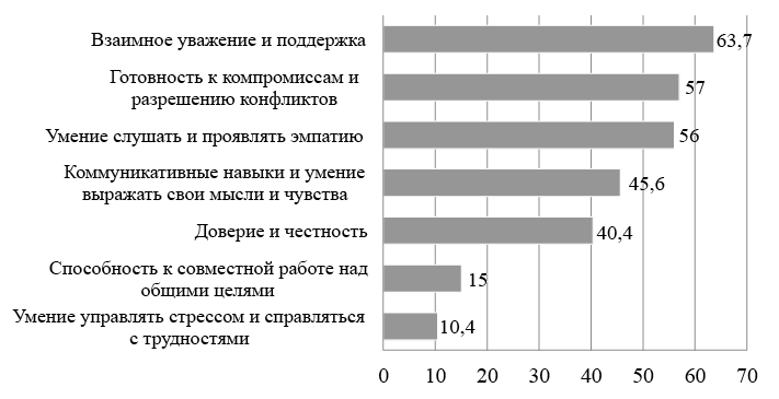Рис. 6. Мнение студентов о качествах и навыках, наиболее важных для семейной жизни, %