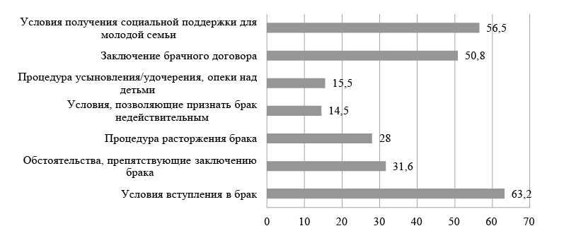 Рис. 9. Правовые знания, необходимые для создания семьи, %