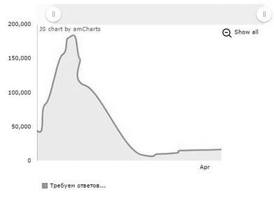 Рис. 10б. Количество публикаций «Требуем ответов 12 июня|Москва» в сообществе «Требуем ответов 12 июня|Москва» за апрель