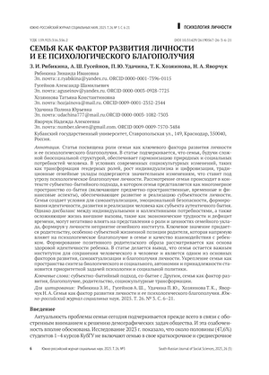 Статья посвящена роли семьи как ключевого фактора развития личности и ее психологического благополучия. В статье подчеркивается, что семья, будучи сложной биосоциальной структурой, обеспечивает гармонизацию природных и социальных потребностей человека. В условиях современных социокультурных изменений, таких как трансформация гендерных ролей, рост индивидуализма и цифровизация, традиционные семейные уклады подвергаются значительным изменениям, что ставит под угрозу психологическое благополучие личности. Рассмотрение семьи происходит в контексте субъектно-бытийного подхода, в котором семья представляется как многомерное пространство со-бытия (включающее предметно-пространственные, временные и финансовые аспекты), обеспечивающее развитие и реализацию субъектности личности. Семья создает условия для самоактуализации, эмоциональной безопасности, формирования идентичности, развития и реализации человека как субъекта аутентичного бытия. Однако дисбаланс между индивидуальными и коллективными потребностями, а также осложняющие жизнь внешние вызовы, такие как экономические трудности и дефицит времени, могут негативно влиять на представления о роли и ценностях семейного уклада, формируя у личности неприятие семейного института. Ключевое значение придается родительству, особенно субъектной жизненной позиции родителя, которая напрямую влияет на психологическое благополучие в семье и качество взаимодействия с ребенком. Формирование позитивного родительского образа рассматривается как основа здоровой идентичности ребенка. В статье делается вывод, что семья остается важным институтом для сохранения человеческого в человеке и является одним из основных факторов развития, самоактуализации и благополучия личности. Укрепление семьи как пространства синтеза биологического и социального, автономии и принадлежности становится приоритетной задачей психологии и социальной политики.
